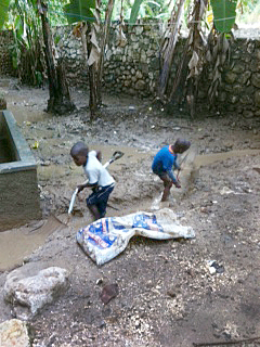 Fillito and Chuku love the daily flooding since they help the big guys dig out the drainage ditches–what a great excuse to play in the mud and get dirty head to toe. Being with the kids is always one of the best parts of visiting our center in Port au Prince. Who’d have thought we’d all get excited to see kids get into mischief!